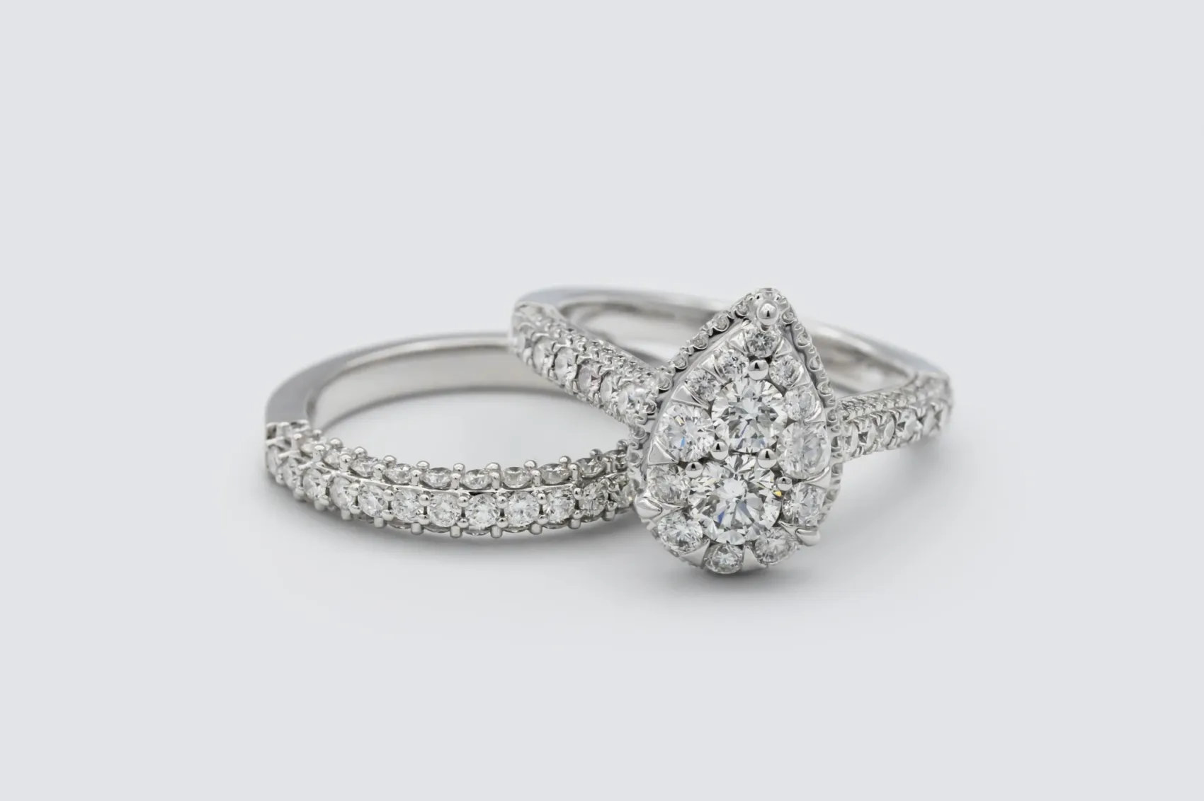 Refined, radiant, and romantic, this 9ct white gold diamond engagement ring and wedding band set captures the essence of timeless love and enduring elegance. Set with a total of 2.30 carats of natural brilliant-cut diamonds, each stone is expertly prong set to maximise sparkle, brilliance, and fire.