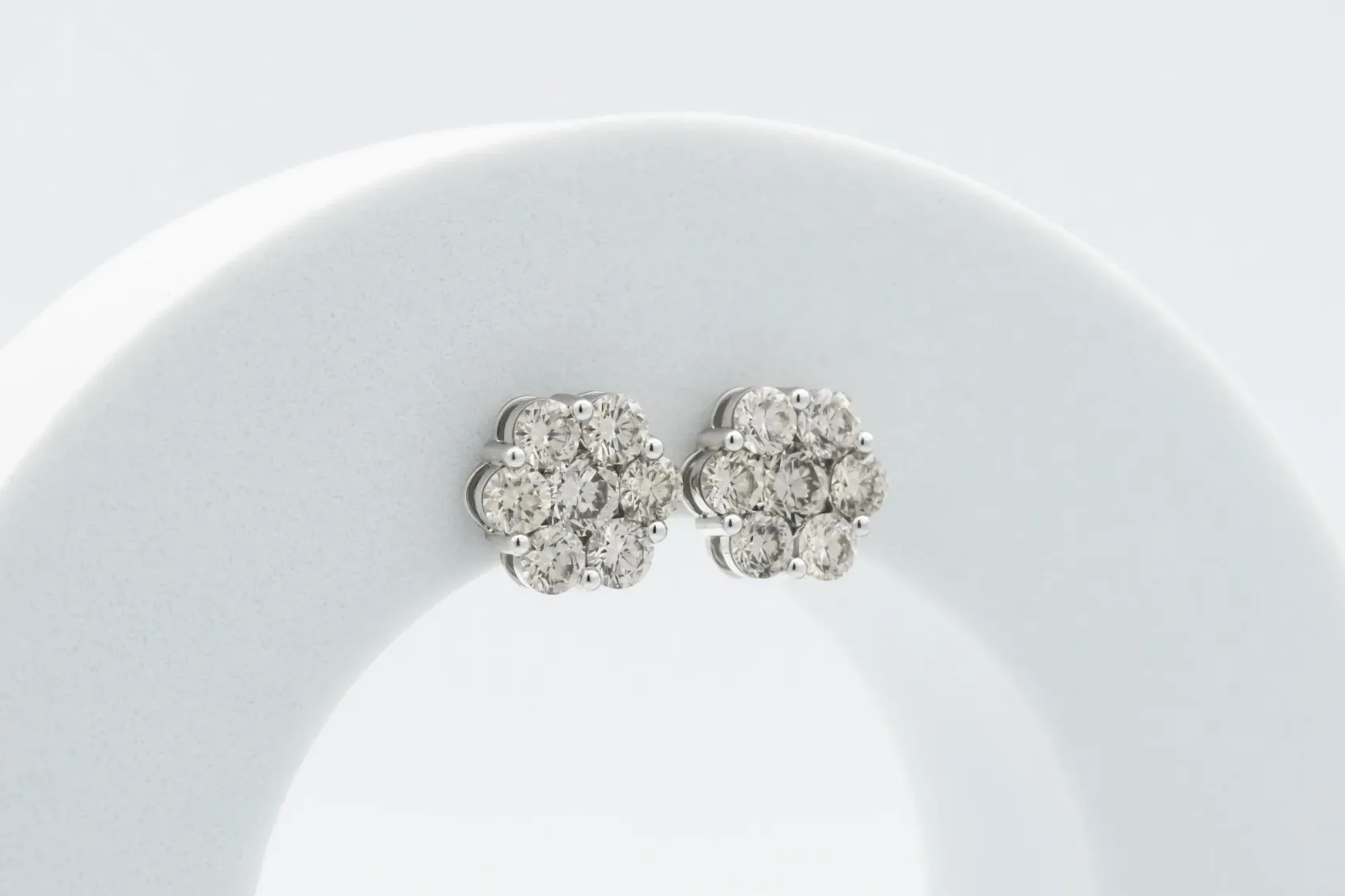 Radiant and refined, these 9ct white gold diamond flower stud earrings capture the beauty of timeless design with a touch of modern sparkle. Set with a total of 4.00 carats of natural brilliant-cut diamonds, each earring features an intricate flower motif symbolising grace and elegance.