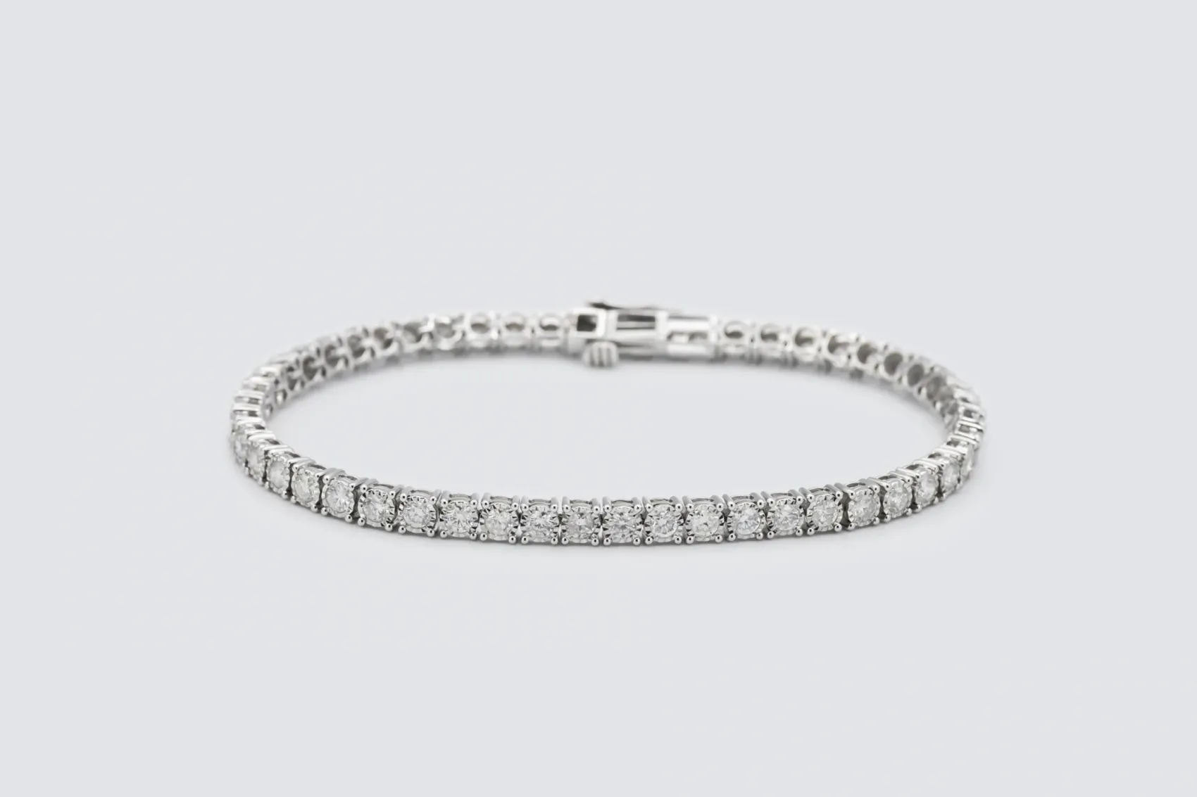 Elegant and timeless, this 9ct white gold diamond tennis bracelet radiates sophistication and understated luxury. Set with 3.53 carats of natural brilliant-cut diamonds, each 4mm stone is expertly claw set to enhance light reflection and create a continuous line of dazzling brilliance.