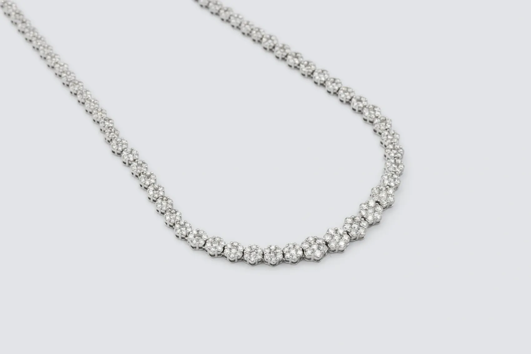 The combination of flower-set artistry, secure claw settings, and the polished 9ct white gold finish reflects CLB Jewellers’ dedication to craftsmanship, beauty, and exceptional quality. A truly distinctive piece, this diamond tennis necklace is designed to be treasured — a timeless celebration of femininity, brilliance, and refinement.