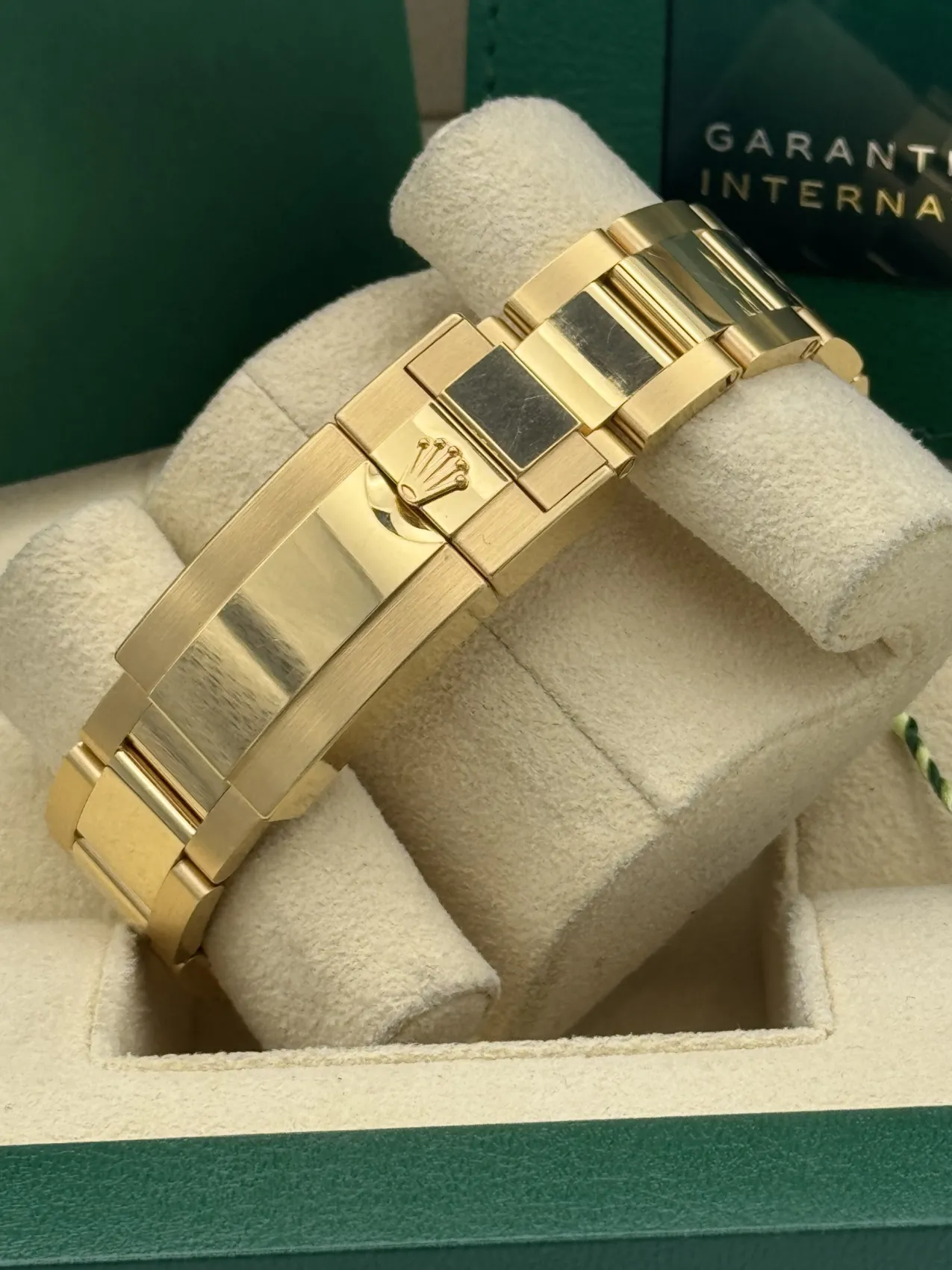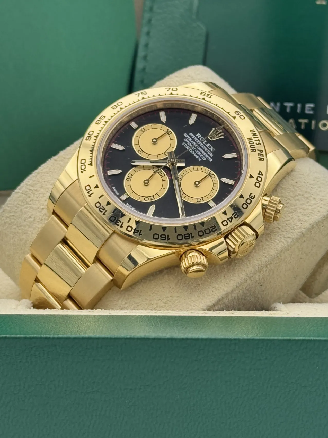This Rolex Daytona 40mm features a 18ct yellow gold case, iconic Paul Newman dial with contrasting subdials, Oyster bracelet, and the Calibre 4130 automatic chronograph movement, presented in excellent 2017 condition.